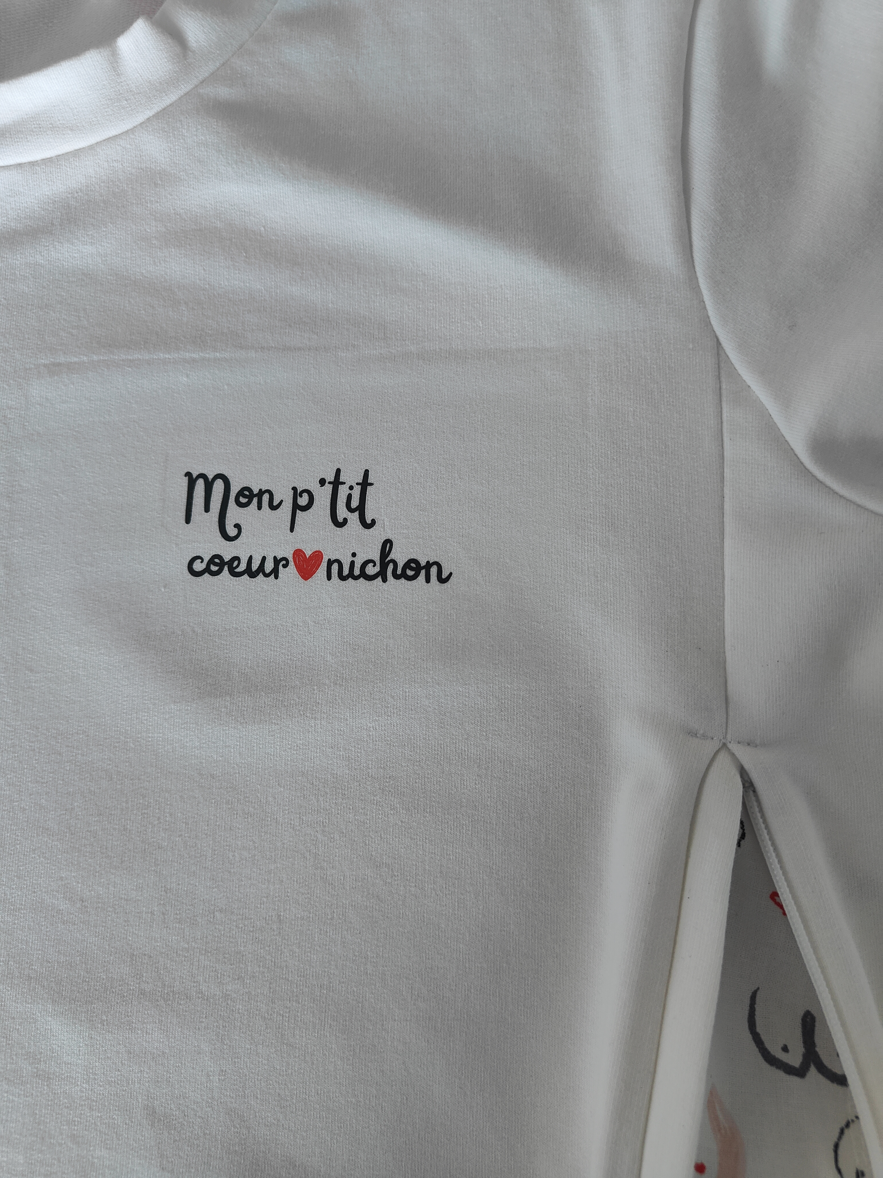 Mais ce qui rend ce modèle vraiment unique, c’est son petit clin d’œil à la maternité : un logo discret et plein de tendresse, “mon p’tit cœur nichon”, qui vient poser une note d’humour tout en finesse. Il célèbre l’allaitement avec une belle dose d’amour… et de second degré.